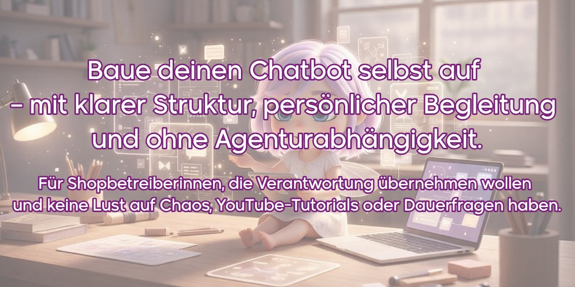 Du brauchst kein Entwicklerwissen und keine Vorerfahrung mit Chatbots. Du bekommst eine klare Struktur, verständliche Schritte und genau so viel Erklärung, wie du brauchst.